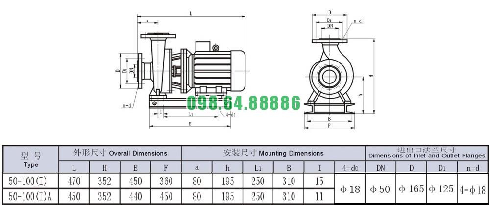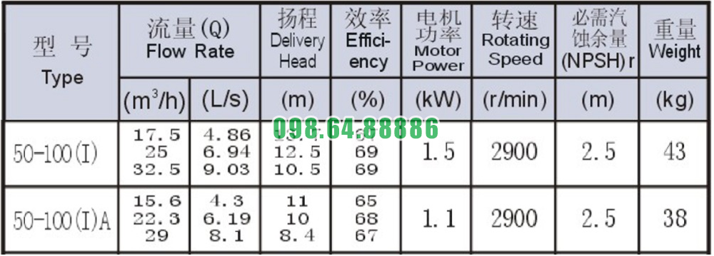 Bán bơm nước trục ngang mã SLW-ISW50-100-I động cơ 1.5 kw