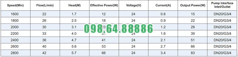 Đường cong hiệu suất bơm hóa chất điện áp 24v và 48v