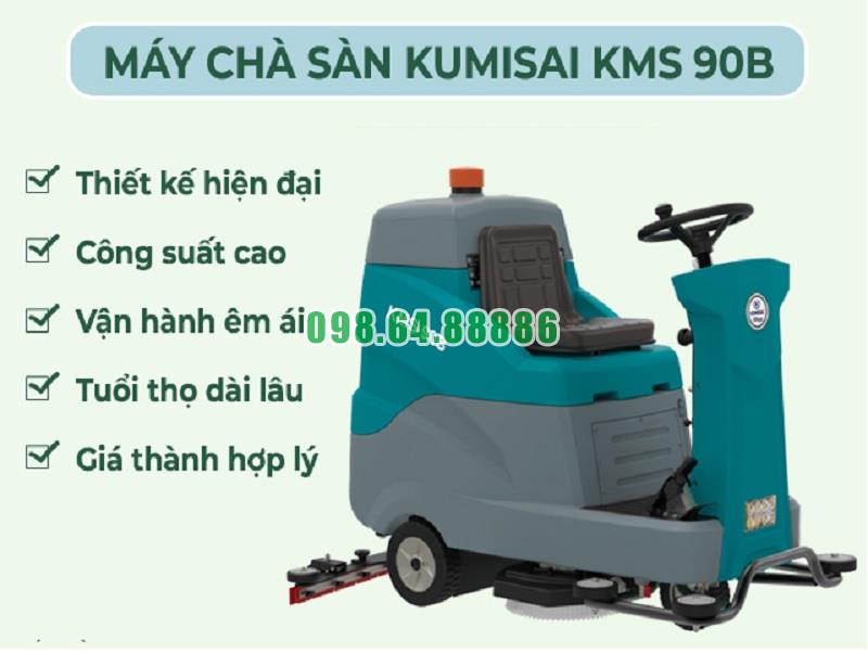 Máy chà sàn liên hợp ngồi lái Kumisai KMS 90B là một loại máy chà sàn công nghiệp được thiết kế để làm sạch và chà nhám các bề mặt sàn. Đây là một máy chà sàn liên hợp có khả năng chà sàn và hút bụi trong một thiết bị duy nhất. Dưới đây là một số vai trò quan trọng của máy chà sàn liên hợp Kumisai KMS 90B: