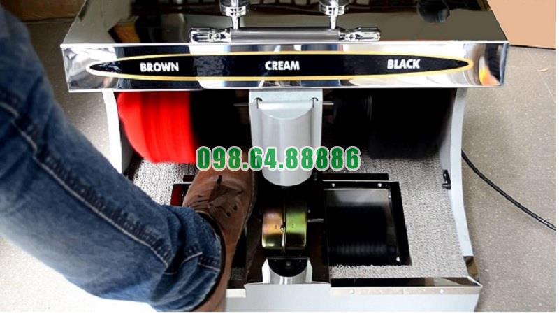 - Số chổi: 2 chổi đánh bụi, 2 chổi đánh bóng (màu đỏ và đen) và 2 chổi đánh đế. Đặc biệt, máy được thiết kế 2 chổi đánh đế giúp loại bỏ bụi bẩn bám dai ở đế giày.