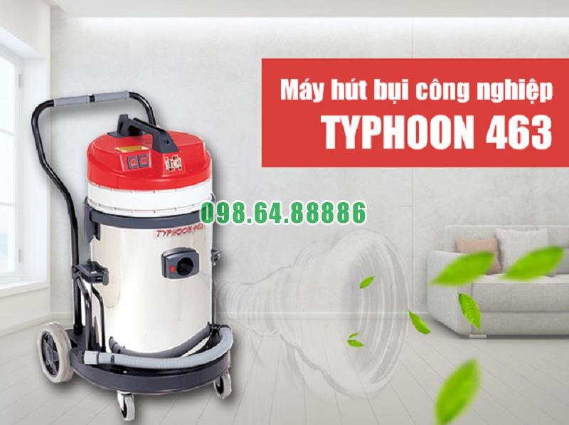 Máy hút bụi - hút nước công nghiệp Typhoon 463 là một loại máy hút công nghiệp được thiết kế để hút cả bụi và nước trong môi trường công nghiệp. Vai trò chính của nó là làm sạch và thu gom bụi, rác và nước trong các khu vực lớn như nhà máy, nhà xưởng, kho hàng, trạm xử lý nước thải, bến cảng, và các môi trường công nghiệp khác.