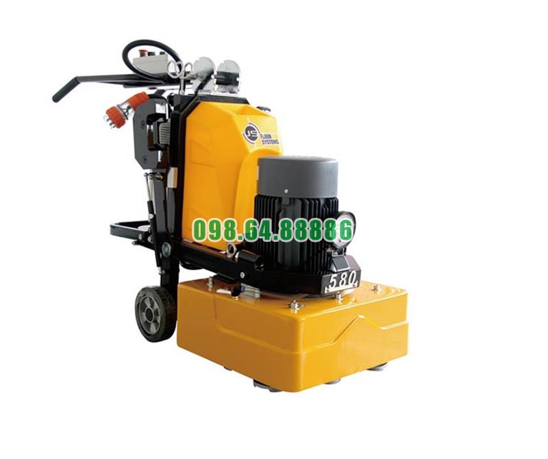 Máy mài sàn JS 580 là một thiết bị công nghiệp mạnh mẽ được sử dụng rộng rãi để mài và đánh bóng sàn bê tông, gạch, đá, hoặc các bề mặt cứng khác. Dưới đây là mô tả về cấu tạo chung của máy mài sàn JS 580: