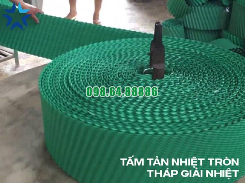 Vật liệu: Tấm tản nhiệt tròn thường được làm từ các vật liệu chịu được môi trường ẩm ướt và có khả năng chống ăn mòn, như nhựa PVC, polypropylene, thép không gỉ, hoặc các hợp chất polymer chịu nhiệt.