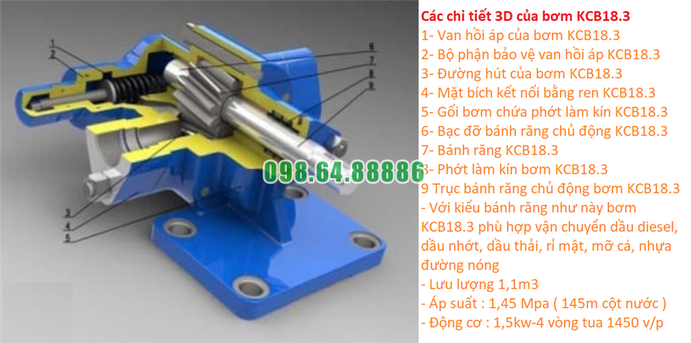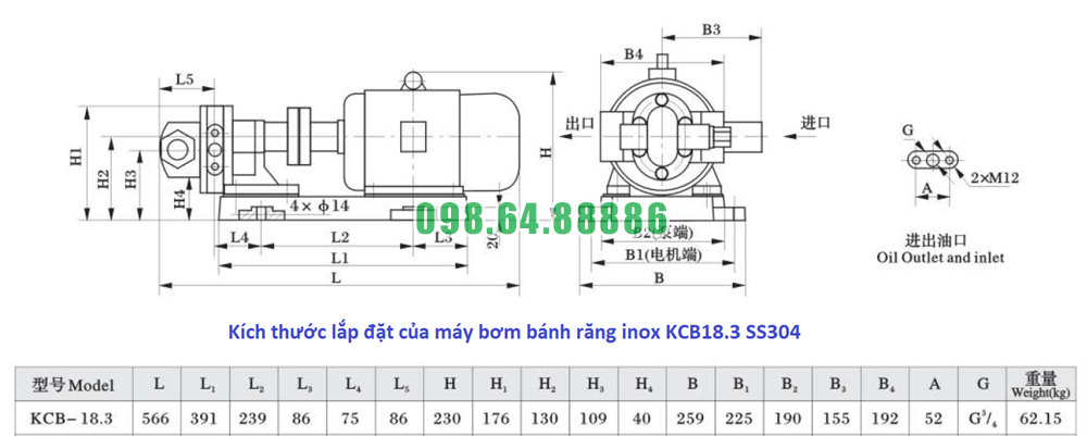 Tổng đài liên hệ mua máy bơm bánh răng KCB18.3 inox 304