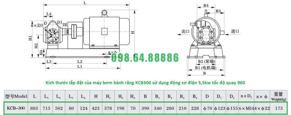 Bảng thông số kỹ thuật của bơm bánh răng KCB300