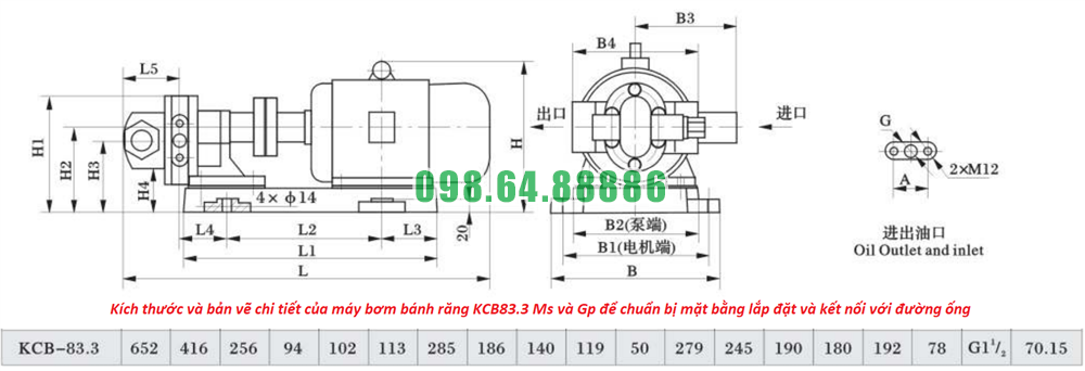 Bảng thông số kỹ thuật của bơm bánh răng KCB83.3