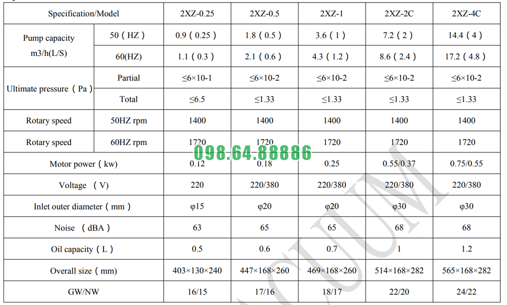 Bơm chân không cánh gạt model 2XZ-2