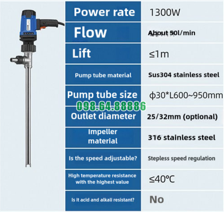 Bơm thùng phuy JDT-1300W-30 SUS304 hoạt động ổn định với: