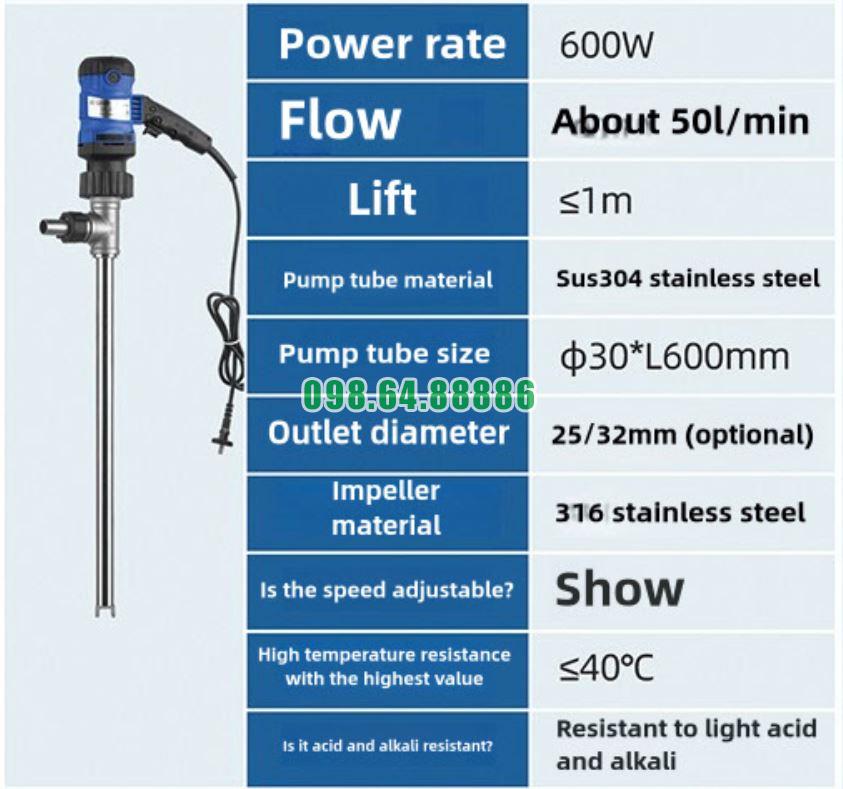 Bơm chiết rót thùng phuy JDT-600W-30SUS304