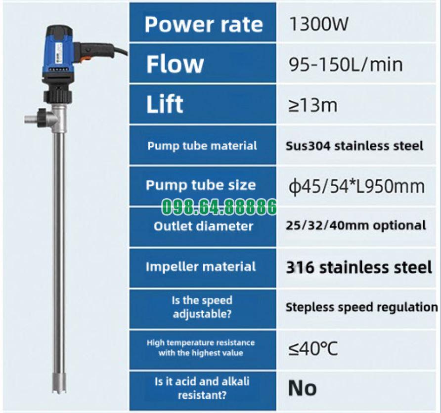 Bơm điện dùng cho thùng phuy JDT-1300W-304SUS