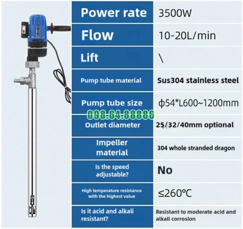 Bơm điện cầm tay dạng trục đứng JDT-3500W-JLG260 là một trong những thiết bị chuyên dụng được thiết kế tối ưu cho việc bơm các loại chất lỏng có độ nhớt đa dạng trong môi trường công nghiệp. Điểm nổi bật của sản phẩm không chỉ nằm ở công suất mạnh mẽ mà còn ở cách thức hoạt động thông minh, giúp tối ưu hiệu suất và độ bền trong quá trình sử dụng.