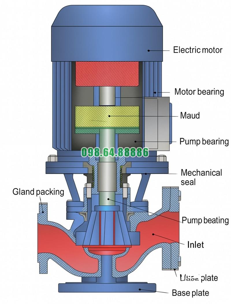 Bơm đồng trục thẳng đứng model ISG65-125 và IRG65-125 là dòng bơm ly tâm thiết kế đặc biệt để tối ưu hóa hiệu suất vận hành, tiết kiệm không gian lắp đặt và đảm bảo độ ổn định cao. Cấu tạo chi tiết của bơm bao gồm nhiều bộ phận chính được chế tạo từ vật liệu chất lượng cao, đảm bảo tuổi thọ lâu dài và khả năng làm việc ổn định trong nhiều môi trường khác nhau.