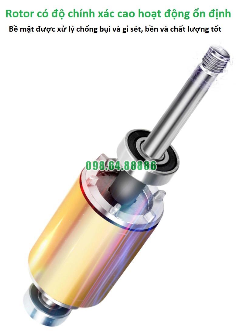 Trục được gia công chính xác, có gắn chốt định vị cánh bơm và vòng đệm nhằm tăng cường độ ổn định khi vận hành.