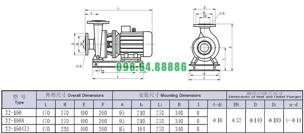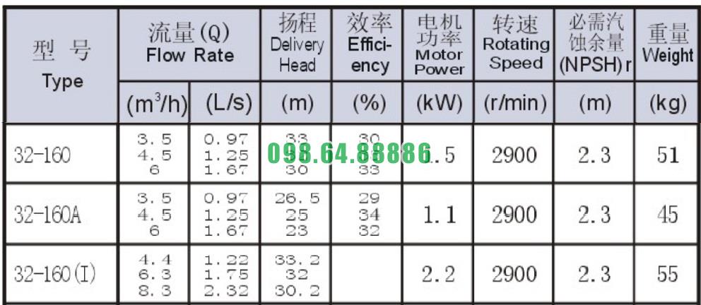 Bơm li tâm trục ngang ISW32-160 đẩy cao 33m và hút sâu 2.3m