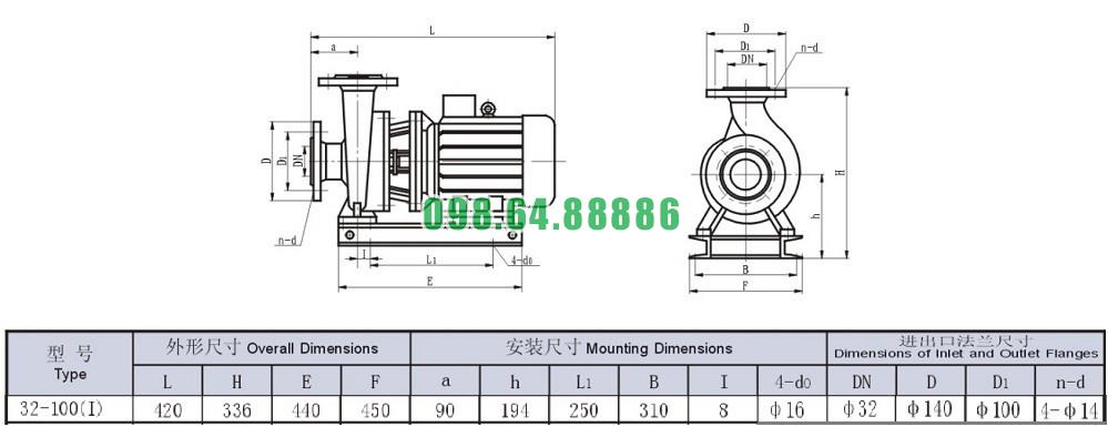 Bơm li tâm trục ngang mode ISW32-100-I