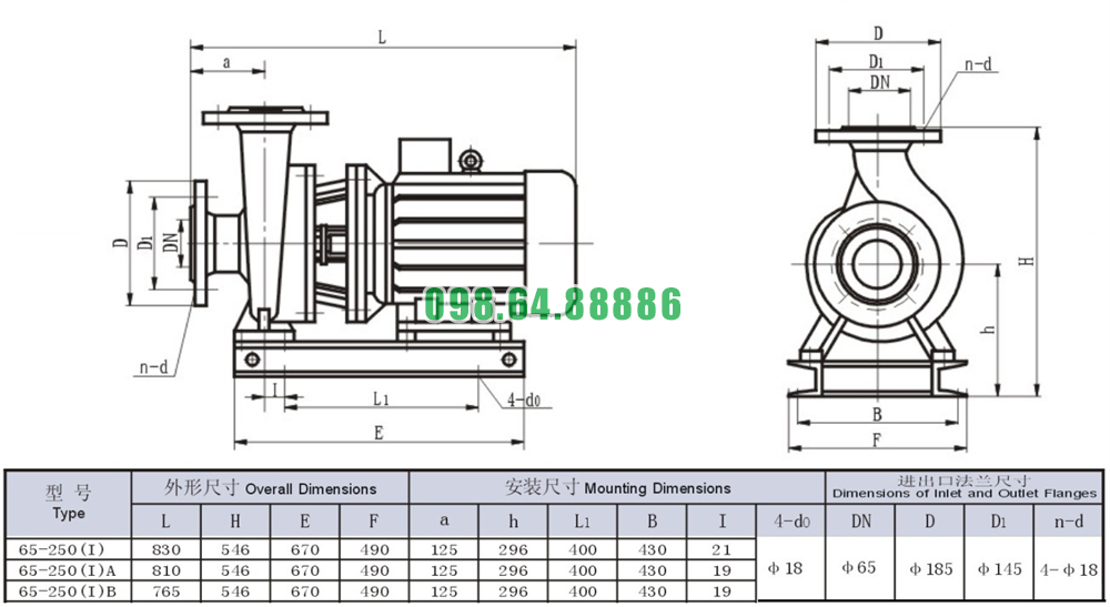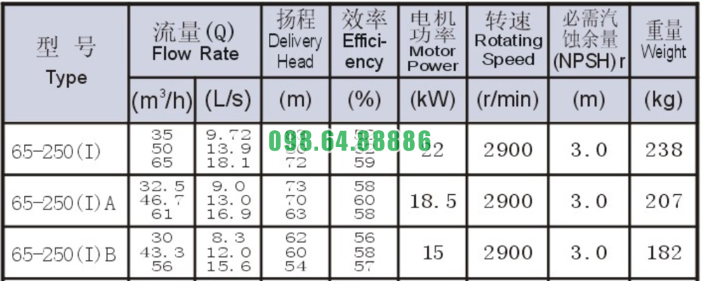 Bơm nước li tâm trục ngang mode SLW65-ISW65-250-I động cơ 22 kw công suất 18.1 L/s