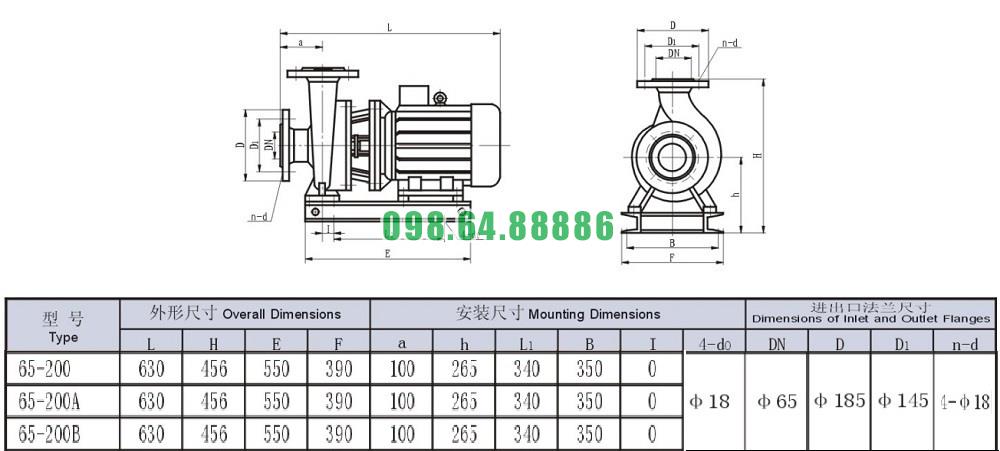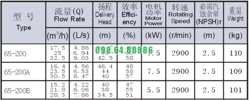 Bơm nước li tâm trục ngang SLW-ISW65-200 động cơ 7.5 kw lưu lượng max 32.5 m3/h