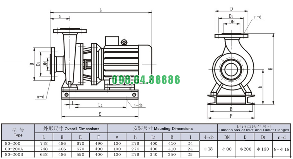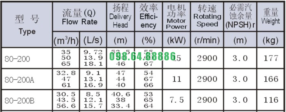 Bơm nước nằm ngang SLW80-ISW80-200 đẩy cao từ 46m- 53.5m