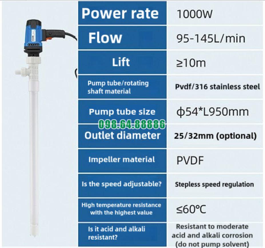 Bơm phuy cắm điện model JDT-1000W-PVDF