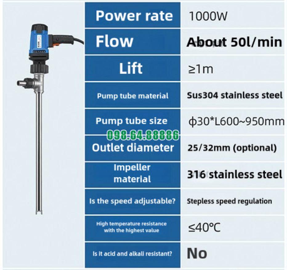 Bơm thùng phuy inox chịu nhiệt JDT-1300W-G260