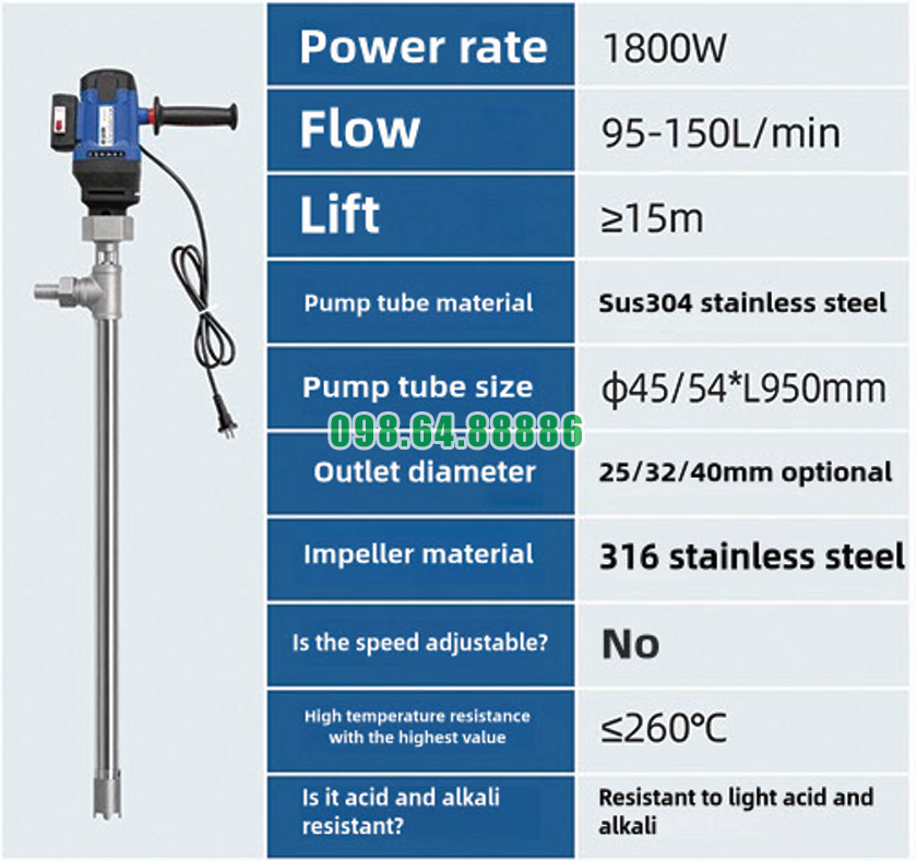 Bơm thùng phuy lỏng nhiệt độ cao JDT-1800W-G260 được thiết kế để làm việc trong điều kiện đặc biệt khắc nghiệt: nhiệt độ cao, chất lỏng có độ nhớt lớn và thời gian vận hành kéo dài. Vì vậy, nguyên lý bảo vệ quá tải đóng vai trò then chốt, giúp bơm vận hành an toàn, ổn định và duy trì tuổi thọ lâu dài cho động cơ cũng như toàn bộ hệ thống.