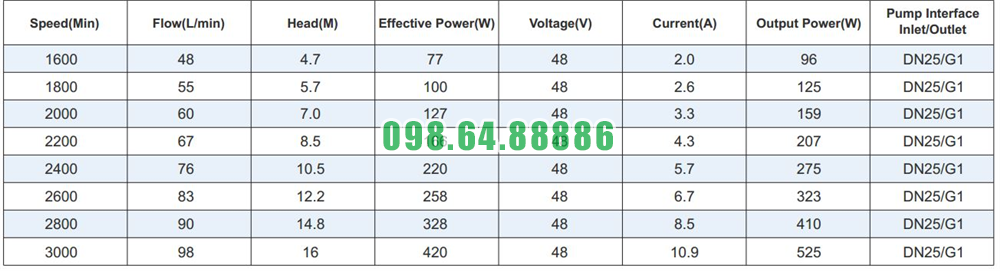 Hình ảnh mô tả thông tin Model bơm hóa chất điện 48v
