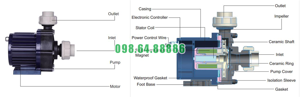 - Trục bơm: Làm từ Gốm (Ceramic) hoặc Silicon Carbide (SiC), có độ bền cao, chống mài mòn tốt.