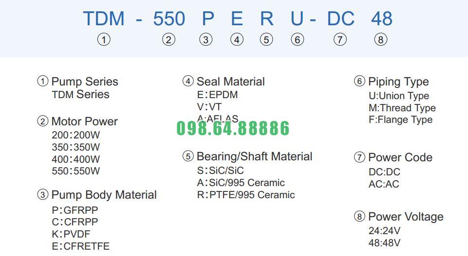 Bảng thông số kỹ thuật bơm hóa chất điện 48v TDM-400ERU-DC48