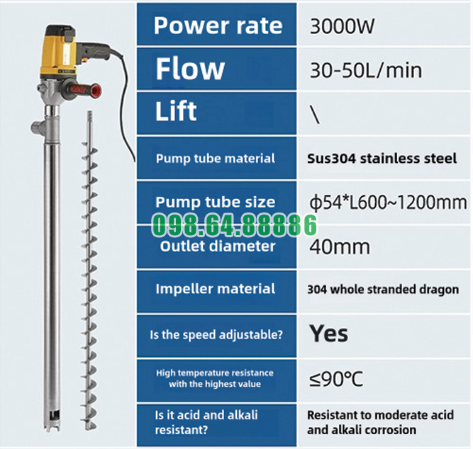 Thông số Bơm điện cần tay hút thùng phuy JDT-3000W-YT