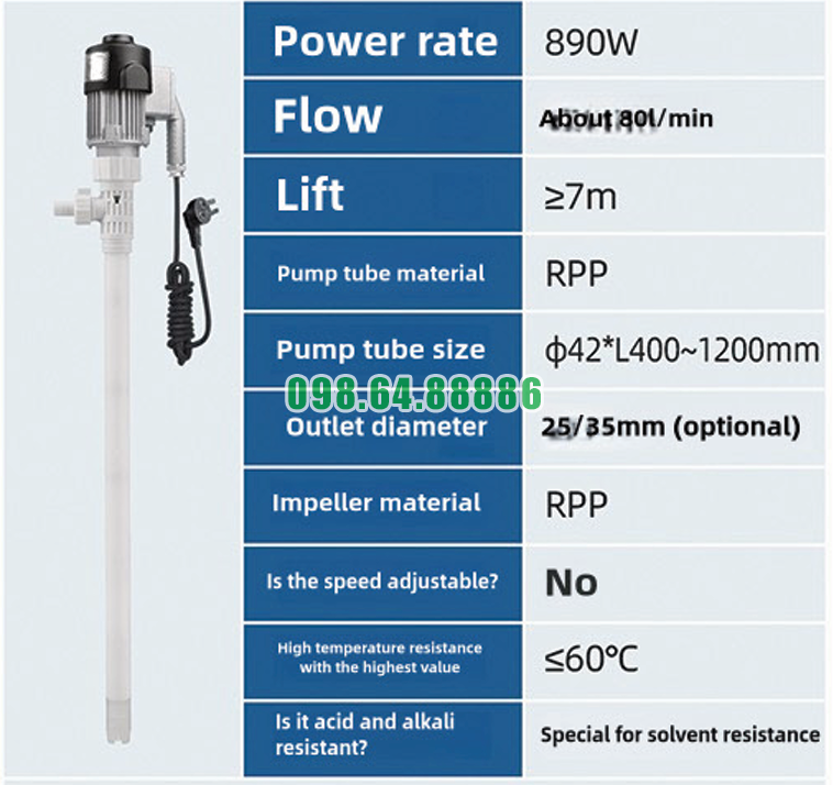 Phần ống bơm sử dụng vật liệu nhựa RPP có màu sắc trung tính, kết hợp với động cơ thiết kế chắc chắn tạo nên vẻ ngoài hiện đại, sạch sẽ. Bề mặt vật liệu có độ hoàn thiện cao, hạn chế bám bẩn và dễ vệ sinh, góp phần duy trì hình ảnh chuyên nghiệp trong môi trường làm việc.