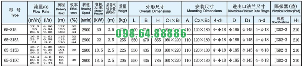 Máy bơm inline, bơm trục đứng, tăng áp ISG65-315, IRG65-315 30kw, 25m3, 125m