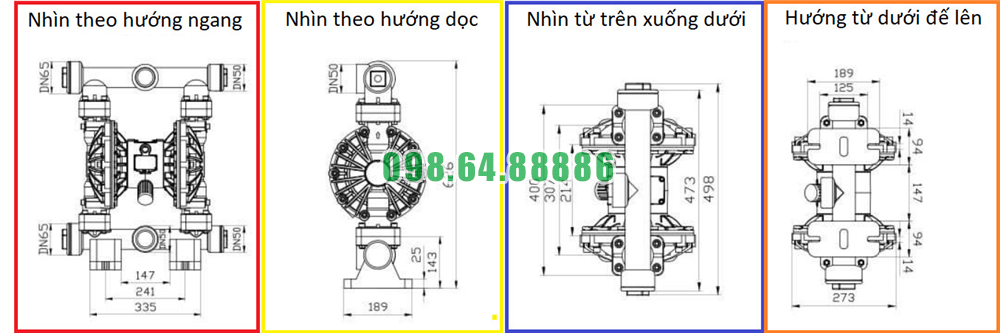 Bản vẽ kích thước máy bơm màng QBY3-50STFF