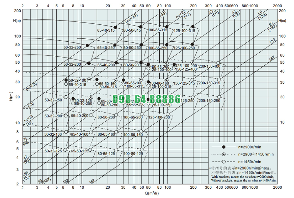 Đường cong hiệu suất của máy bơm nước li tâm trục ngang cánh hở IHK150-125-400