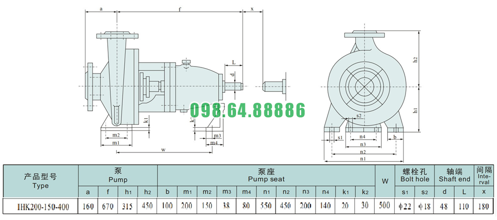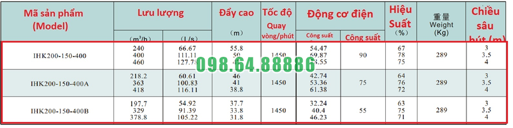 Máy bơm nước li tâm trục ngang cánh hở như IHK200-150-400 thường có một số đặc điểm về hiệu suất mà làm nổi bật chúng trong các ứng dụng bơm nước công nghiệp và dân dụ: