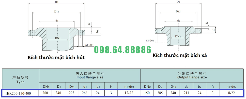 Máy bơm nước li tâm trục ngang cánh hở IHK200-150-400