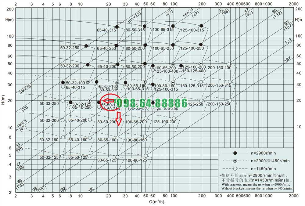 Đường cong hiệu suất của máy bơm nước li tâm trục ngang cánh hở IHK65-50-125