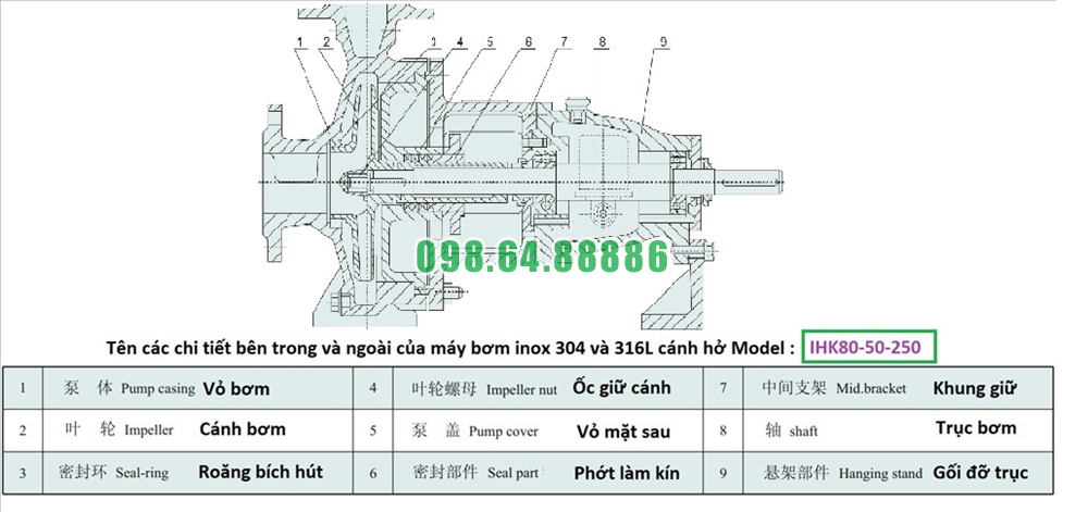 Tìm hiểu cấu tạo nổi bật của máy bơm nước li tâm trục ngang cánh hở IHK80-50-250