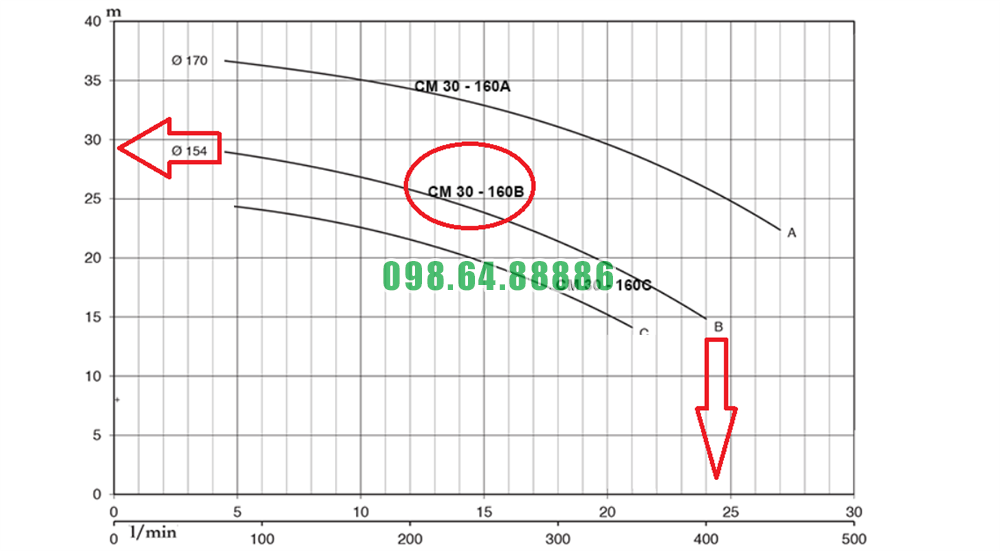 Đường cong hiệu suất máy bơm nước li tâm trục ngang CM32-200C