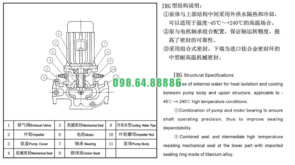 Máy bơm nước ly tâm trục đứng ISG25-160 và IRG25-160 sở hữu cấu tạo đơn giản, chính xác và dễ bảo trì, phù hợp cho các hệ thống cấp nước, tuần hoàn nước nóng, điều hòa không khí, và phòng cháy chữa cháy. Thiết kế trục đứng kết hợp động cơ tích hợp giúp tối ưu diện tích, vận hành êm ái, hiệu suất cao và tuổi thọ lâu dài.