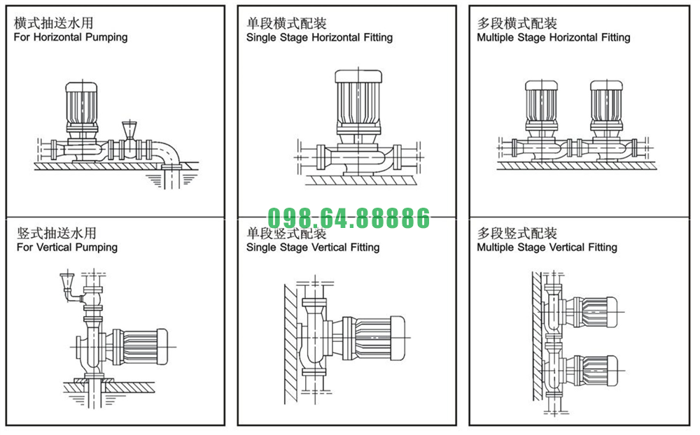 Ứng dụng cho các công trình cấp nước sạch nông thôn, nơi cần truyền nước từ bể chứa hoặc giếng khoan đến các điểm sử dụng, với cột áp vừa phải và lưu lượng ổn định.
